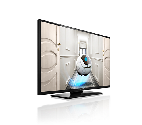 Wydajny energetycznie telewizor LED dla hoteli umożliwia szybką instalację za pomocą klonowania ustawień przez złącze USB. Jest wyposażony w specjalne funkcje hotelarskie, takie jak blokada określonych pozycji w menu i blokada sterowania.